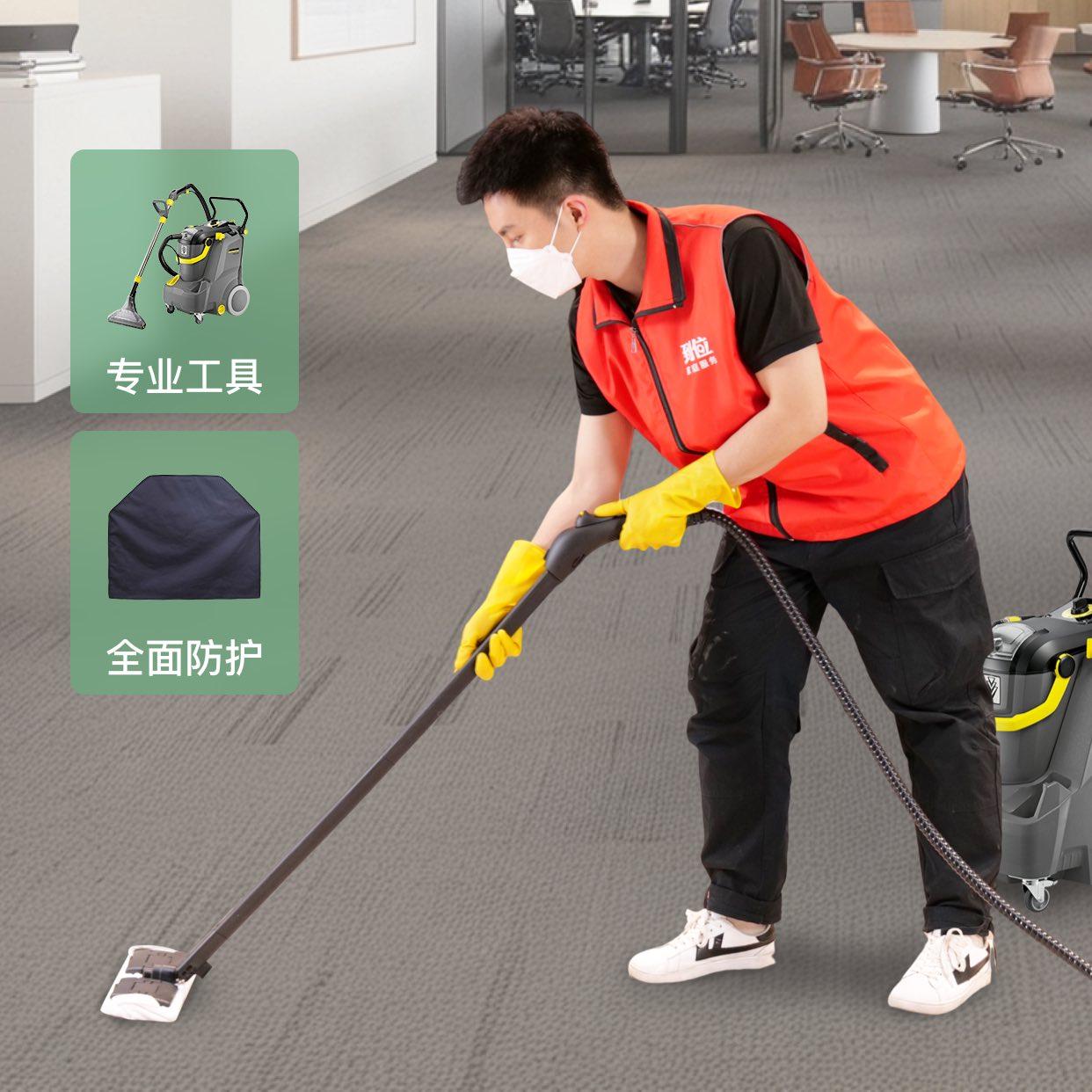 此服务包含化纤材质地毯,100平米起购,不足100平米的按照100平米计算。 服务人员携带地毯清洗机、地毯清洗剂、地毯刷盘、防护铺垫上门。 服务流程: 1. 检查防护:针对地毯进行全面检查,铺好防护垫; 2. 专业除尘:使用吸尘器针对地毯正反面吸尘除毛皮; 3. 专业清洗:使用地毯清洗机针对地毯全面除渍、除螨; 4. 顽固污渍:使用地毯清洁剂针对重点污渍深度处理; 5. 毛绒梳理:全面梳理使地毯达到蓬松效果。 注意事项: 1. 特殊材质的地毯(如真丝、挂毯、工艺毯等),具体清洗方式及收费建议与商家协商; 2. 清洗完地毯处于半干状态,建议在清洗后处于通风处晾干,避免阳光暴晒。 服务保障: 价格透明:不现场加价,无额外收费; 不满意重服务:若出现服务质量问题,免费返工。
